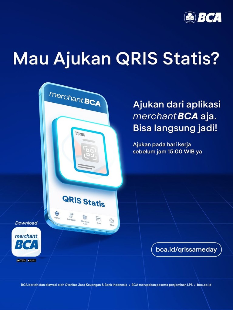 Udah waktunya nih tokomu dilengkapi dengan QRIS Statis! Yuk, ajukan langsung via aplikasi Merchant BCA karena bisa langsung jadi di hari..