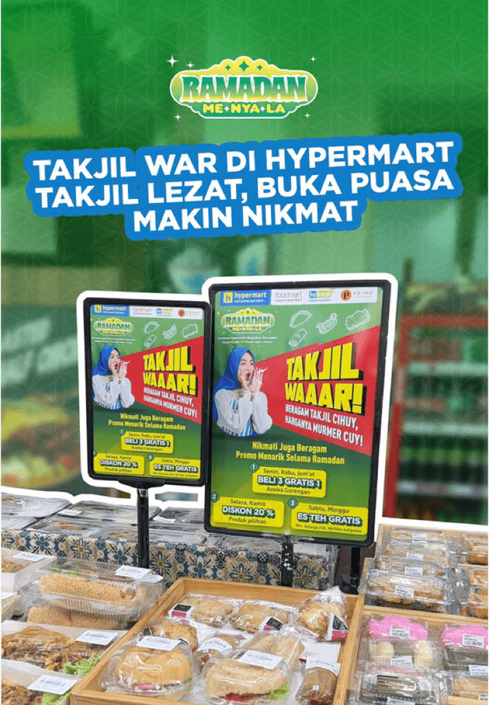 TAKJIL WAR setiap hari di Hypermart! Buat Hypermart Lovers yang lagi belanja tapi kepepet mau buka puasa, langsung melipir aja ke bagian takjil..