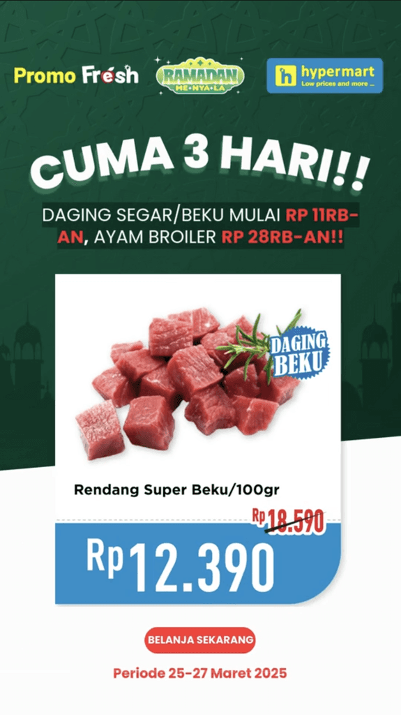 Waktunya promo mingguan seru 🤩🛍️ Belanja semua kebutuhanmu dengan harga terhemat hanya di Hypermart Yuk belanja sekarang!..